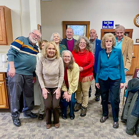 Bishop Benfield visited Emmanuel Church in Corry on Sunday, March 15th. The church has one of few rood screens in the diocese, a rood screen being a a wooden frame, topped by a cross, between the pews where the congregation sits and the altar area. After the Eucharist, the congregation gathered for a brunch with a large variety of homemade casseroles and desserts.